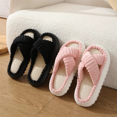新しいスタイルの快適さスクエアトゥウィンターソフトファッションホームファースライドスリッパ